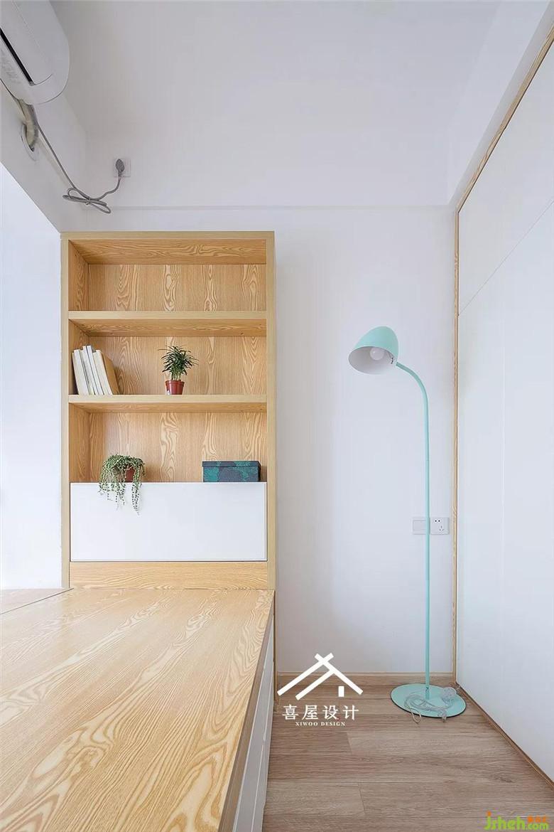 次臥室沿著飄窗做出來1.5米的榻榻米,利用原墻體空缺的地方做了隔板柜,相當于床頭柜的功能可以放一些隨手小物,而這些小物件的擺放,可以讓整體變得活絡(luò)起來。