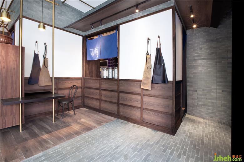 在空間布局上,敞開式的廚房在墻面采用了藍紫色的小磚,大大小小的深棕木色檔口,能夠360度看到廚房的工作人員制作手工飲品的過程,讓食客時刻感受著品牌的匠心。