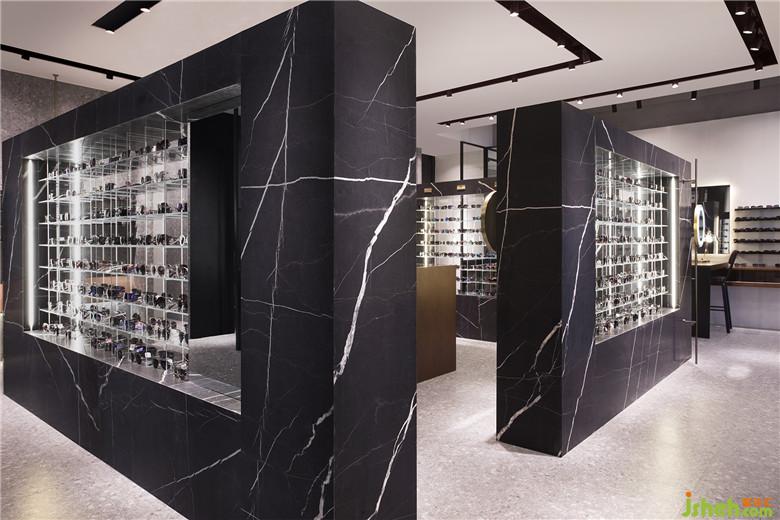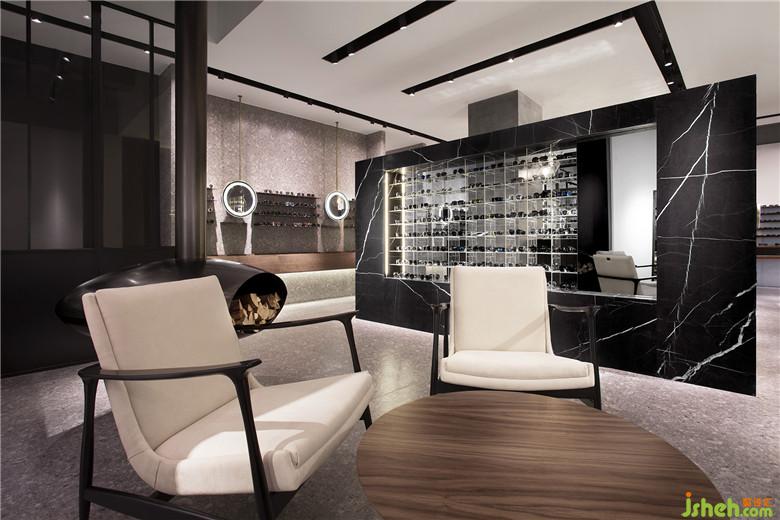 此建筑年代已久,室內設計師為了保持原有的建筑感,特地大面積用具有時代感的水磨石地磚綴以溫潤的胡桃木和現(xiàn)代時尚的深色天然大理石。同時在墻面采用大面積留白的手法搭配著少許的深色大理石,顯得整個空間放眼望去干凈、明亮、整潔。主打高品質極簡風格,迎合現(xiàn)代年輕消費群體。