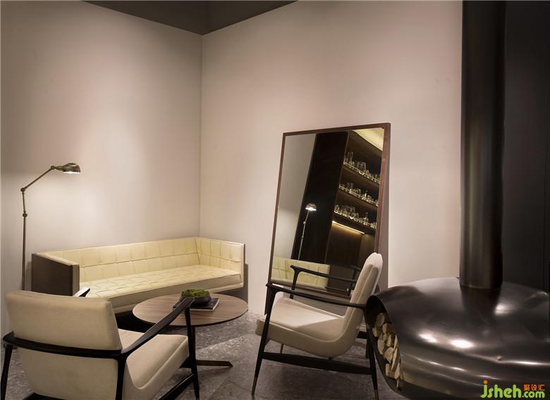 在休息區(qū)特意營造了一種會客廳的氛圍,在質(zhì)地柔軟的沙發(fā)旁搭配精致優(yōu)雅的壁爐,讓客戶能在選眼鏡之余放松一下。