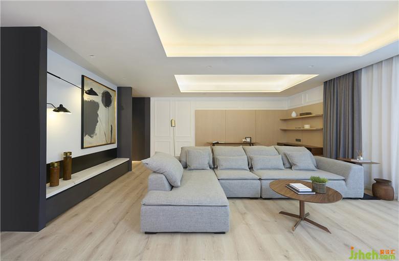 客廳一張灰色沙發(fā),茶幾、顏色自然的木質(zhì)地板、大面積白色電視背景墻,當光線穿過陽臺透過紗簾,極具層次感的傾灑在客廳內(nèi),看起來更加溫暖。