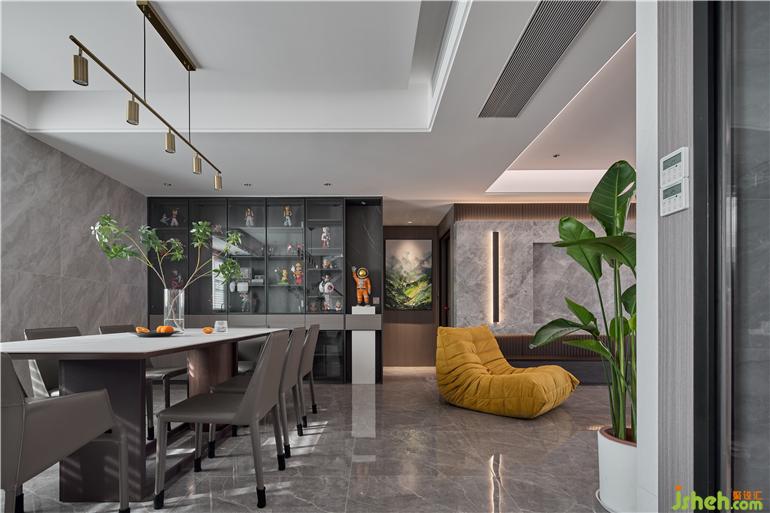 入戶大面的鞋柜,滿足全家人的需求。接著映入眼簾的是餐廳那排裝飾柜里面的動(dòng)漫手辦,是否讓你想起了童年。電視背景墻巧妙地把所有的電線插座隱藏到了側(cè)面的半開放格里,顯得電視背景干凈利落,家居設(shè)計(jì)符合男主人有點(diǎn)潔癖加強(qiáng)迫性的要求,一盤天堂鳥隔壁擺放的是“豆腐塊”加上毛毛蟲的沙發(fā)組合,顏值高且舒適度100分,往上一躺全身心都放松了。
