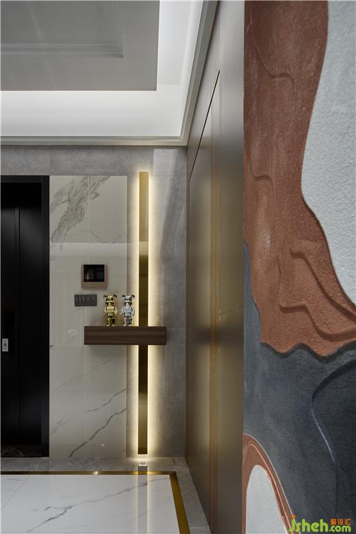 主臥利用床頭背景做了一個(gè)儲(chǔ)物柜加床頭柜,打破了一慣呆板的軟裝床頭柜對(duì)稱設(shè)計(jì),休息時(shí)閑坐在羊毛沙發(fā),裝修設(shè)計(jì)俯視江景想必把一天的疲憊都能消除殆盡。