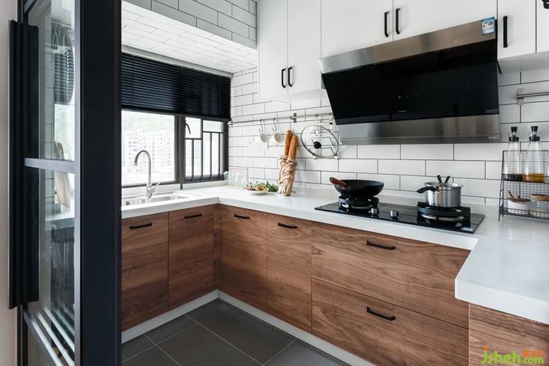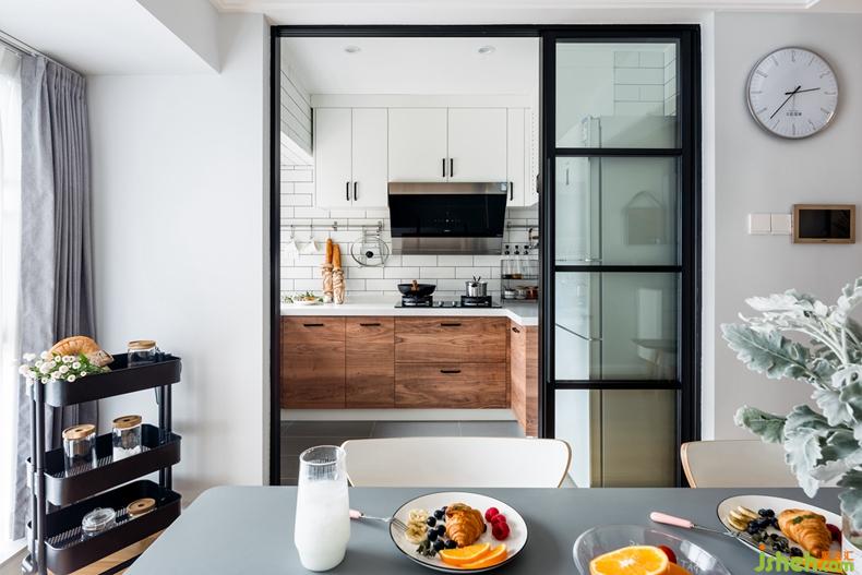 廚房墻面選用小白磚和木色櫥柜搭配,一個精致有愛的廚房是家的心臟,茶、咖啡和享受親手烹飪的美食都在這里實現(xiàn),在廚房里制作一杯熱飲,或者品嘗剛出爐的甜點,都會讓人在深感幸福和生活的美妙。