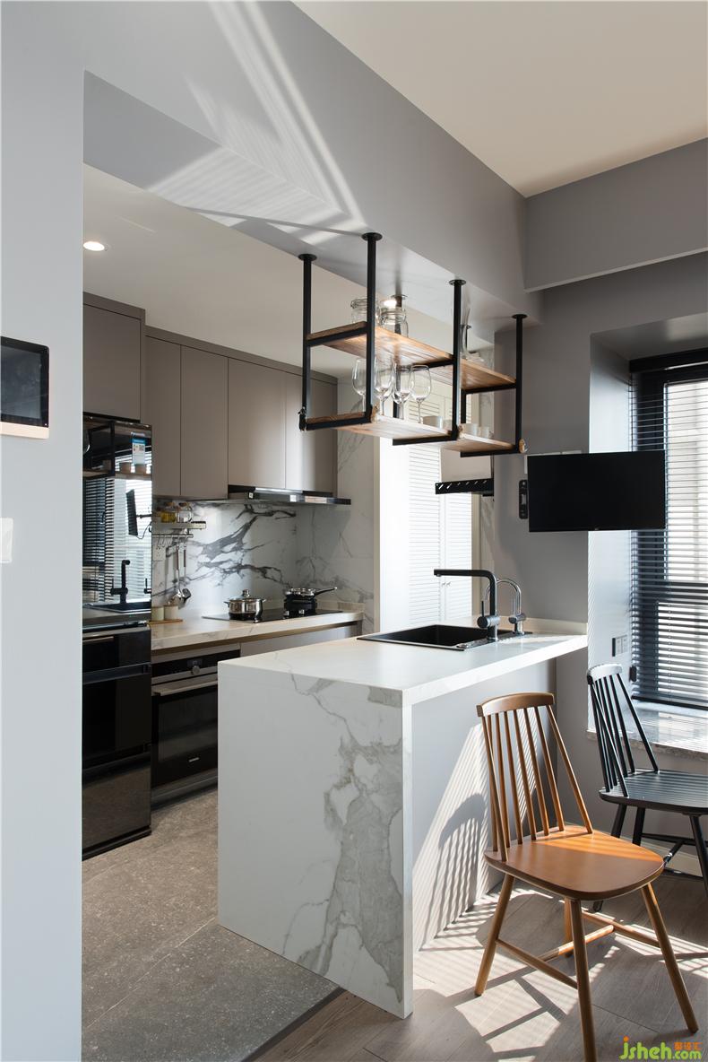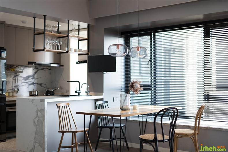 簡約的線條餐桌椅,鐵藝與木質(zhì)的搭配,工業(yè)風下掛式的酒杯架,室內(nèi)設(shè)計師猶如愜意的咖啡廳文藝且情調(diào)。尤其是在閑暇時光,坐在一角落,夕陽的余暉,淺淺映射在桌面,一段輕柔舒緩的音樂,閉上雙眸,靜靜享受那份閑暇,托杯細品貌似苦澀卻很清甜的咖啡。