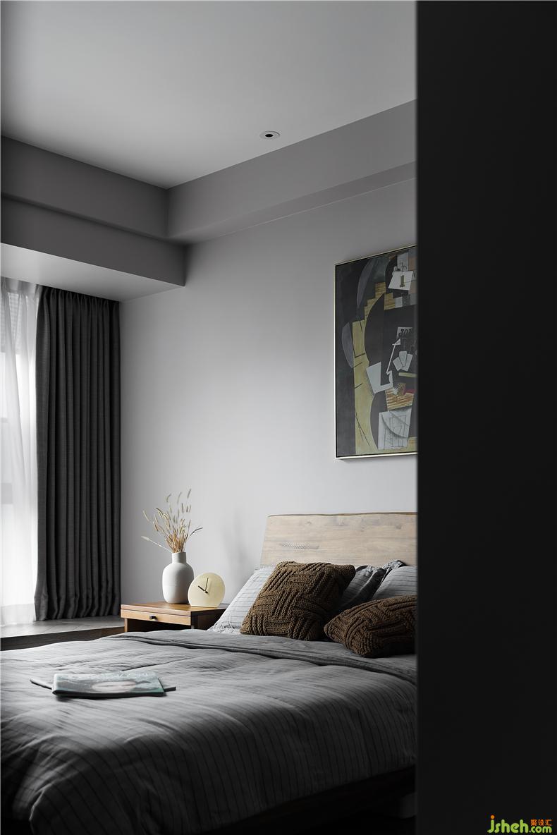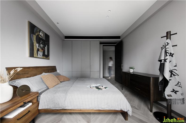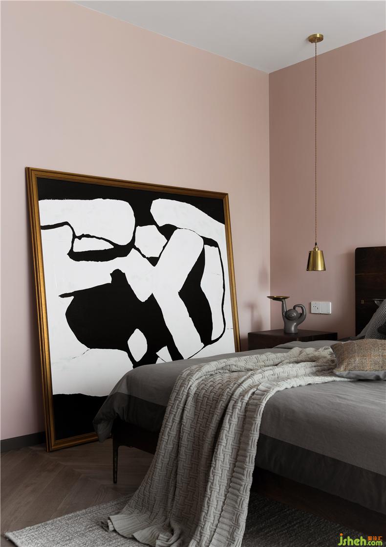 搭配實木床與黃銅吊燈,輕復(fù)古與現(xiàn)代的自然混搭,有一絲文藝,又有一絲浪漫,完美詮釋屋主個性,不失生活品味