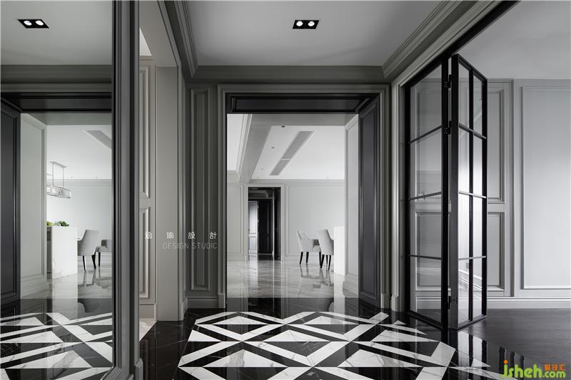 ① 將入戶區(qū)右側(cè)的房間全部打通,墻體拆除,并內(nèi)移做了玻璃門隔斷,入戶區(qū)域瞬間開闊大氣;