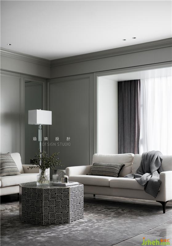 客廳簡單的黑白灰色系,簡單的線條豐盈客廳的立體感,配以米白色的布藝沙發(fā),深灰色單椅,以及八邊形茶幾,家具貫穿于空間的情致之中,增強(qiáng)了客廳的豐富度,賦予空間視覺層次感。