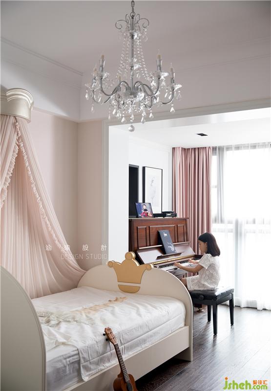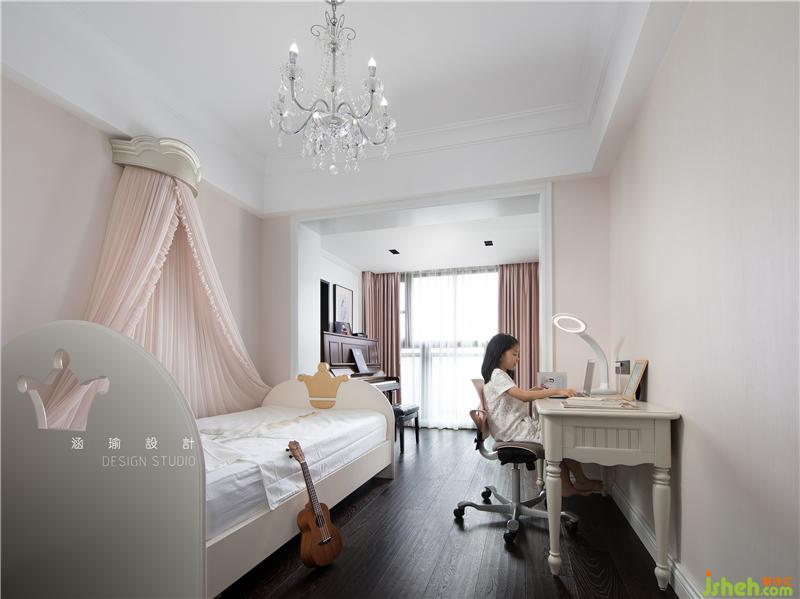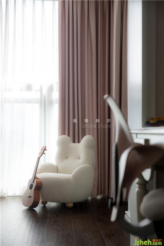 女兒房間的家具都是靠墻擺放,留出足夠的兒童活動(dòng)學(xué)習(xí)空間,打通了原來的陽臺(tái)區(qū)域,整面落地窗帶來足夠的自然光線;