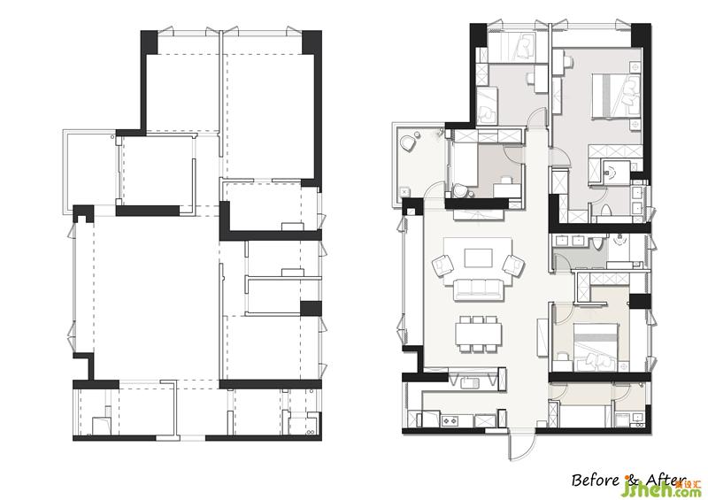 改掉主臥與主衛(wèi)呆板的動線,融入了轉(zhuǎn)角衣帽間,讓動線更為流暢