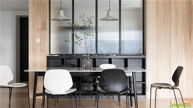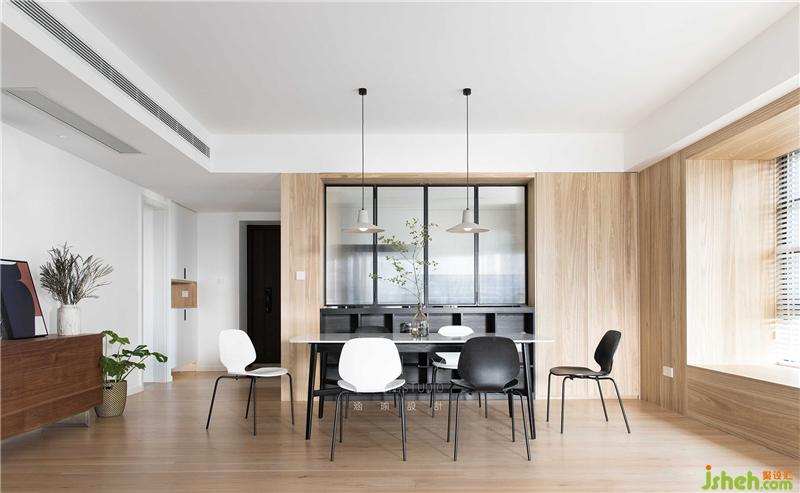 開放式一體化設(shè)計的客餐廳,有意無意的劃分著區(qū)域,將天然材料融入家中,感受溫和柔軟的居家氛圍。諾大的飄窗與百葉隨時恭候著陽光的到來,去演繹不同的藝術(shù)光影。