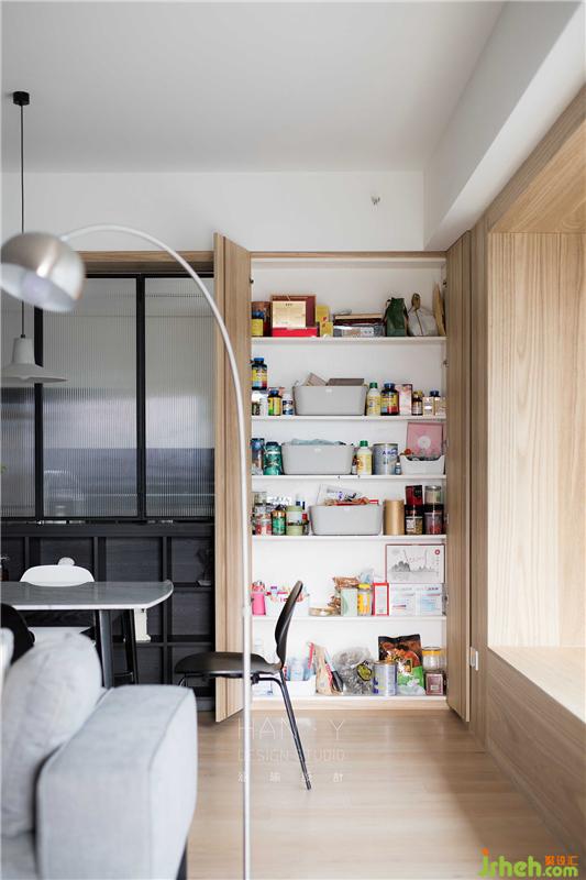 借了客餐廳空間的光,增加了廚房內(nèi)部的采光,明亮通透。在洗碗的時候能看見外面嬉戲的孩子,也即便是一個人在家?guī)Ш⒆拥娜俗黾覄?wù)的時候也能更安心。