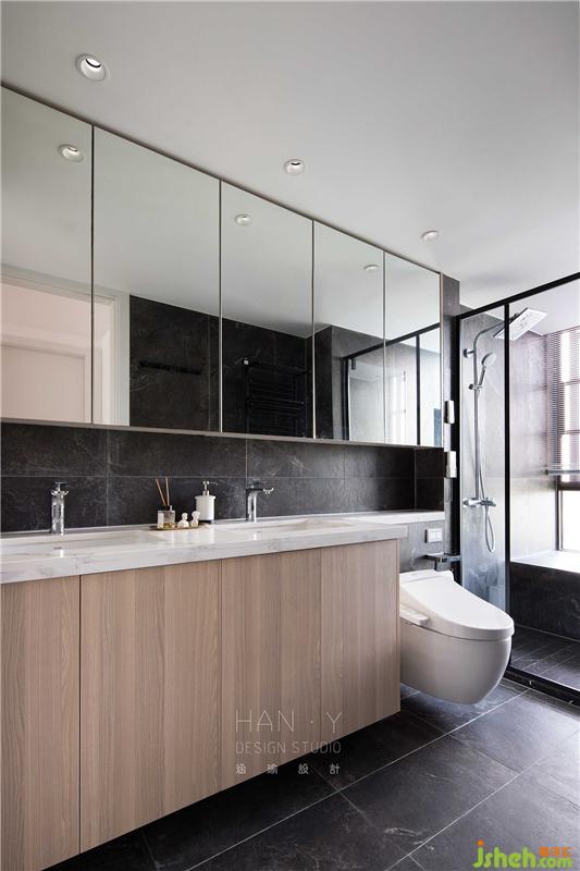 公衛(wèi)也是運(yùn)用到雙人位置洗手臺,實(shí)用簡約且增加使用的便利性,鏡面儲物柜到浴室柜可以收納一大家子的生活物品。