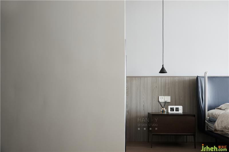 木飾面作為床頭的護(hù)墻板,能使光線散射的作用,促進(jìn)睡眠質(zhì)量的好處。與衣柜同色系色調(diào)融合在一個(gè)空間中,搭配低飽和度的簡(jiǎn)約線條家居,少了些單薄多了些層次。