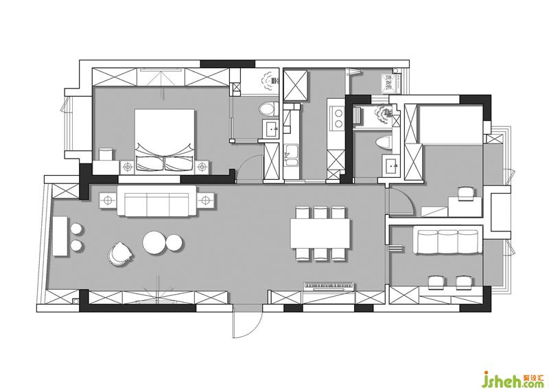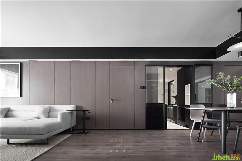 Y小姐是一個很溫柔很耐心的人,與她接觸給人的感覺很溫和,很有親和力。她個人的喜好與她的性格截然相反,慣性的以為會選擇暖色的她更偏愛冷色系中個性黑灰系,崇尚簡潔干凈的感覺。所以本次案例中運用到了大量的黑色,在黑色空間中巧妙融入淺色系的家具和木色的裝飾,和精準的結構比例處理區(qū)域,高級的簡練感油然而生,如同她對工作的嚴謹認真一樣,有條不紊。
