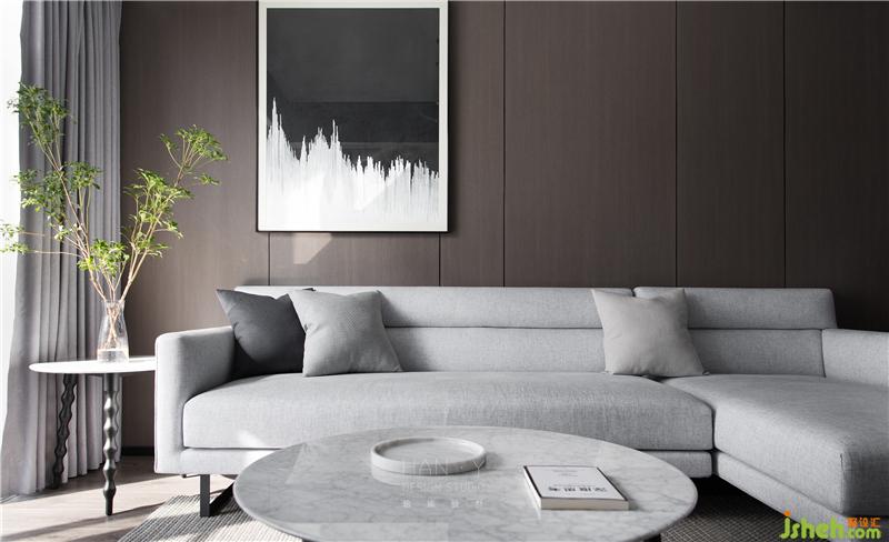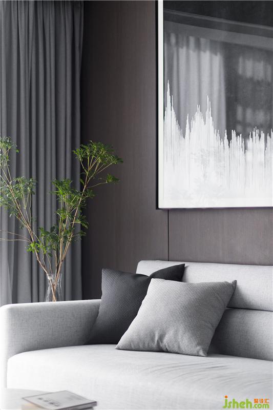 在背景木飾面我們選用淺棕結合黑色一個搭配法,并用淺灰色沙發(fā)點綴,整個空間顯得通透明亮,所有色彩都帶有灰度,展現(xiàn)一種對沉靜自持、舒緩簡單的向往,展現(xiàn)了純粹而定靜的本質。