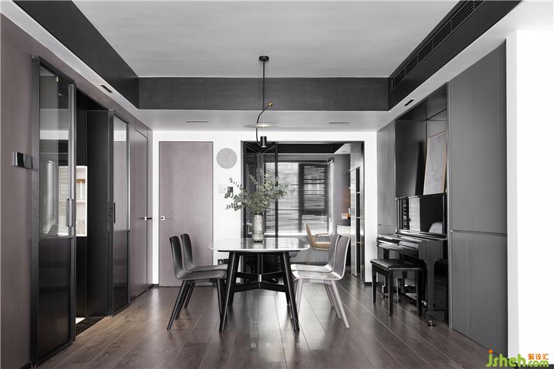 餐廳延續(xù)黑白棕的選色,強調(diào)功能性裝修設計,把高級黑運用在家具配飾上,掩蓋了黑色原本的冷酷,線條簡約流暢,色彩恬靜。黑與白,看似簡單平靜,卻蘊含著無窮的魅力,賦予空間無限的想象。