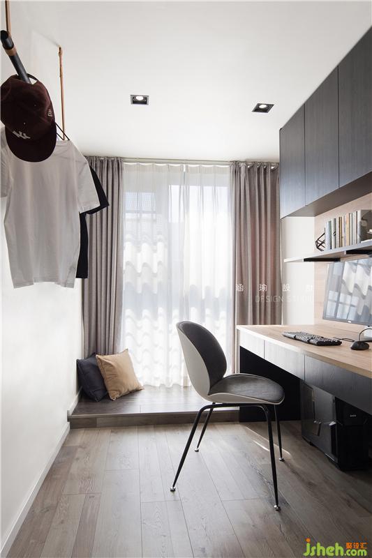 臥室隔壁的多功能房間,同樣用到了玻璃推拉門,采光通透。作為書房工作室,也可作為洗烘衣服的空間,掛燙衣服等都是可以這個空間進(jìn)行,也可是坐在地臺上感受溫暖的陽光與欣賞窗外的美景的休閑區(qū),一室多用,實現(xiàn)功能最大化。