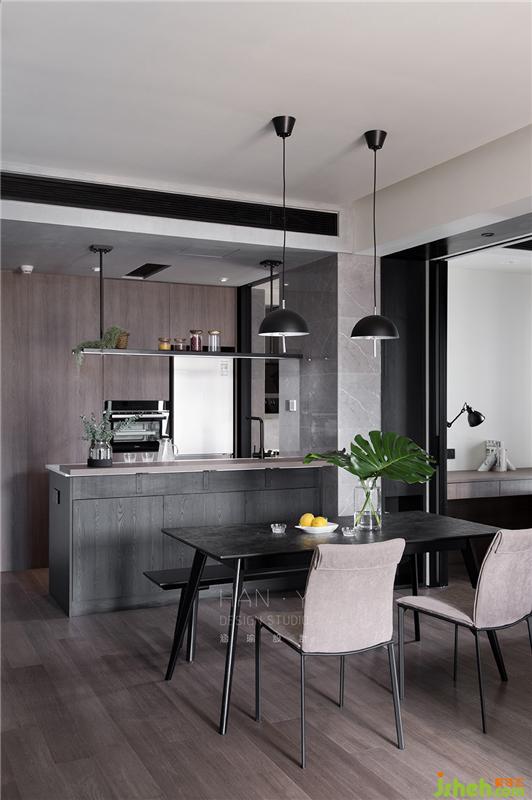 中廚是擁有生活中煙火氣的地方,盡可能讓空間比重更舒適,因此把小生活陽(yáng)臺(tái),這個(gè)無(wú)作為的小空間盡可能利用上,重組合并為廚房空間。
