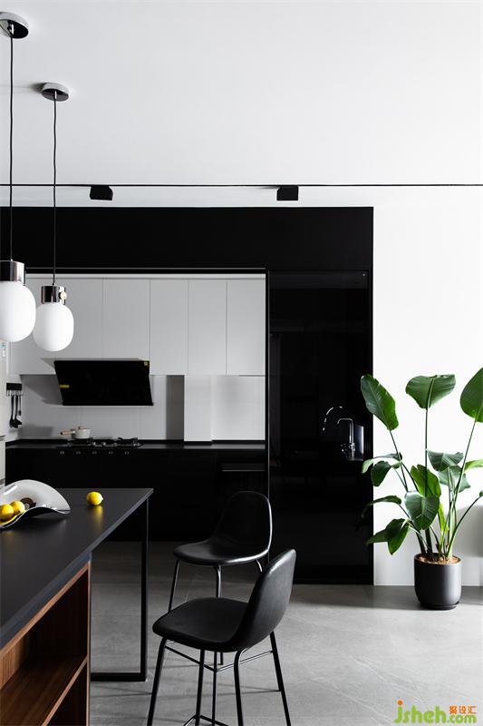 推開黑色玻璃推移門后,也足夠藏下人間煙火氣。棱角塊面分明的簡潔,半開放式的設(shè)計在考量互動體驗(yàn)之余,也讓空間盡顯純粹、干練。