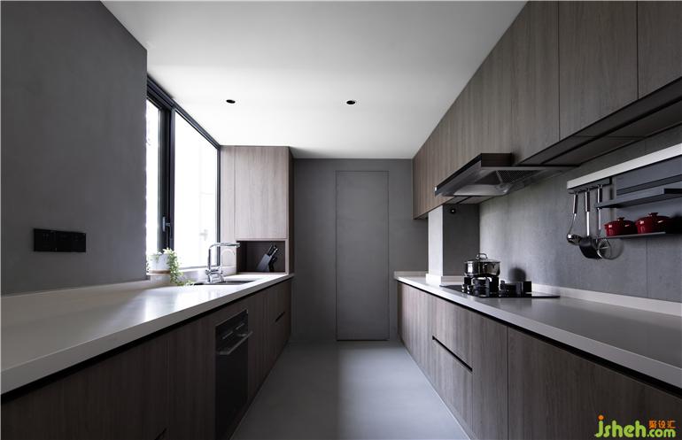 ② 餐廳處設(shè)置一體式島臺餐桌,并增加西廚操作區(qū)及餐邊柜,方便收納,同時(shí)擴(kuò)大廚房的縱深,讓功能區(qū)間的面積趨于合理。