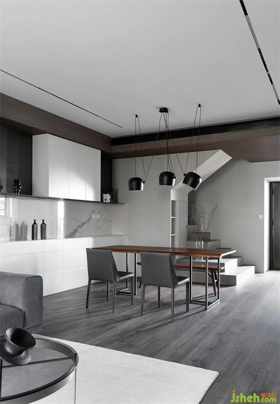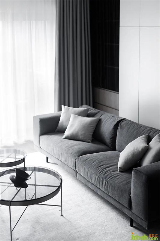 公區(qū)的布藝沙發(fā)、寬敞的餐桌,構(gòu)建出五口之家的幸福日常。圍坐在一起看上一場電影,或是餐后的休憩,將更多焦點集中在交流,讓人與人之間擁有更多的開放性空間。