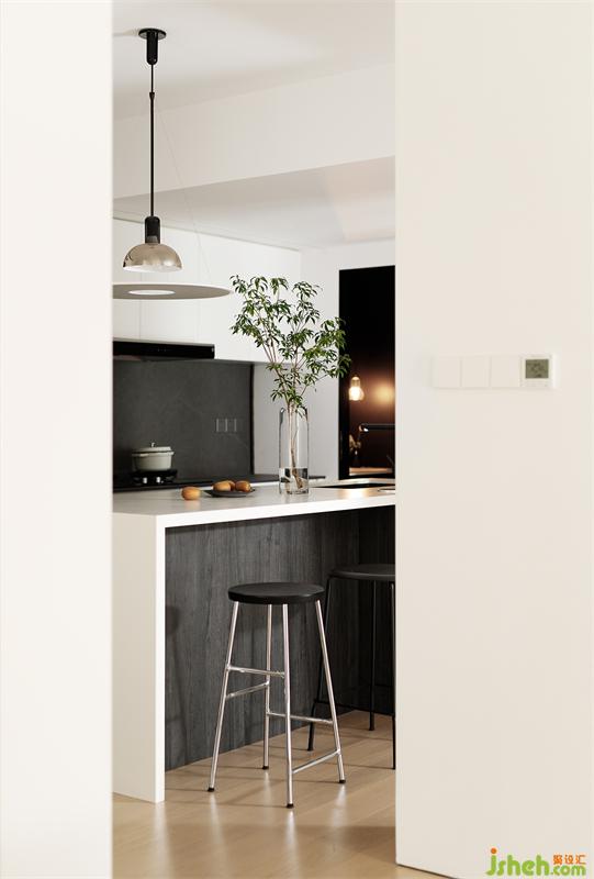 在滿足基本功能舒適性的前提下,釋放了原封閉廚房和洗手間的區(qū)域,打造出超大操作空間的開放式廚房,提升了空間的通透性與拓展性,同時產(chǎn)生既獨立又互動的豐富生活場景。