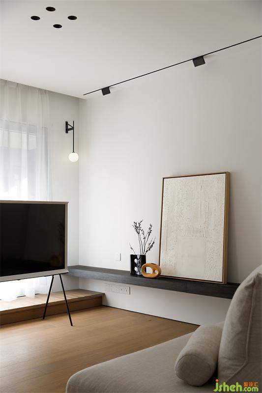 結(jié)合屋主實際需求下,我們運用建筑思維,將廚房與衛(wèi)生間區(qū)域優(yōu)化整合, 利用體塊化的結(jié)構(gòu)進行區(qū)域間的分隔與聯(lián)結(jié),地臺設(shè)計貫通陽臺、客廳與多功能間,帶來豐富采光的同時,整個公共區(qū)域呈現(xiàn)出流動的意趣。