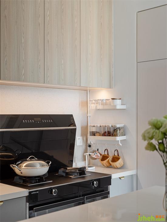 二字型的功能布局,一邊是中廚,另一邊是西廚吧臺與餐桌,方便愛下廚的女主,一個轉(zhuǎn)身就可以輕松切換不同的烹飪方式,周末也可以和孩子一起做西點料理,培養(yǎng)動手能力,家裝設(shè)計搭配上綠植和窗外的陽光,給每一次的動手制作帶來更美好的心情。