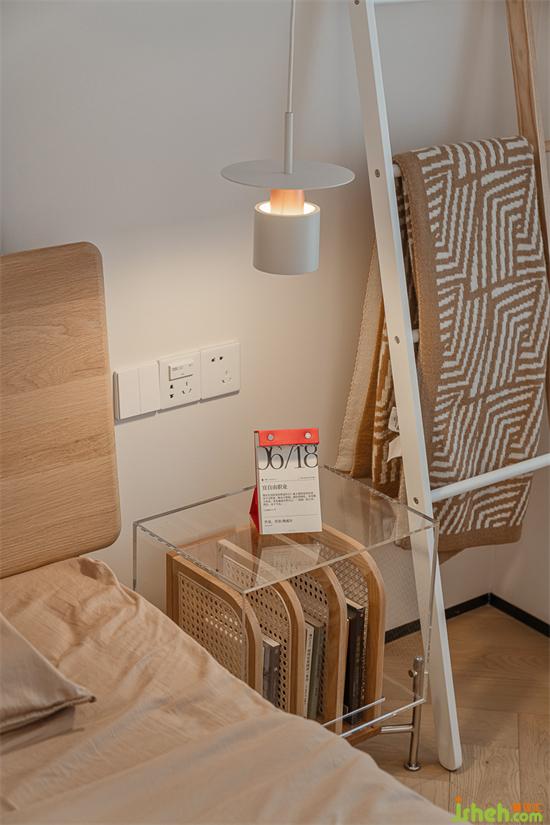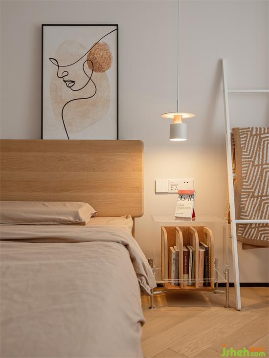 木質(zhì)家具搭配咖色床品帶來舒緩文藝的氣息。家裝設(shè)計(jì)隨著一天的結(jié)束,屋主會(huì)利用書桌將工作和日常事宜記錄總結(jié)在洞洞板上,自律認(rèn)真的人,總是能在生活中收獲自在與喜樂。