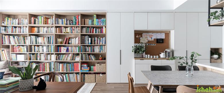 整體規(guī)劃上我們強調了機能及實用,客廳無電視和沙發(fā),取而代之的是整面的黑板墻和書墻,這里是童趣樂園,也是圖書館,更是親子互動的主場。家長的閱讀愛好讓姐妹倆從小就沁潤在書香世界,在成長過程中保持對知識的好奇和渴望。