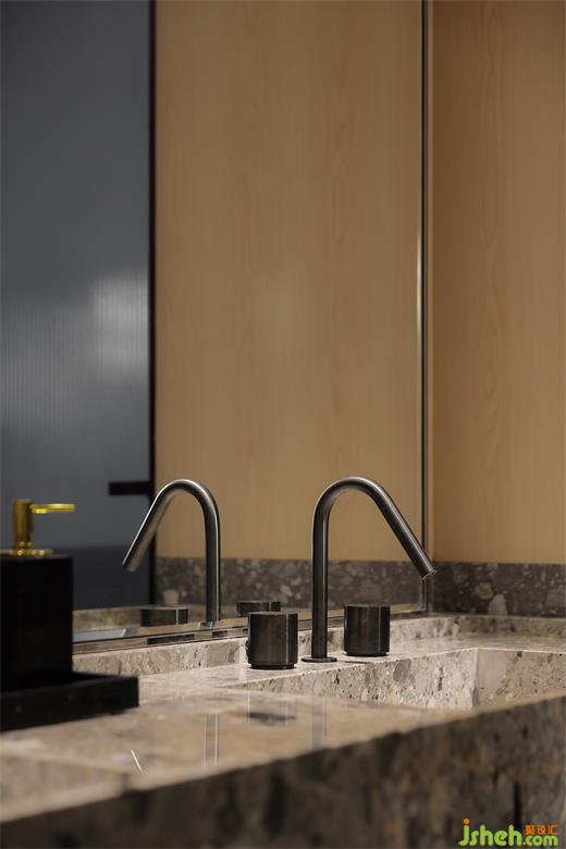 深圳仁山智水家裝設(shè)計以簡潔清淺的設(shè)計語言,通過冷暖材質(zhì)的對撞創(chuàng)造出奇妙的反差感,視覺上產(chǎn)生的強(qiáng)對比效果,為衛(wèi)浴場景增添了豐富的活力與動感。