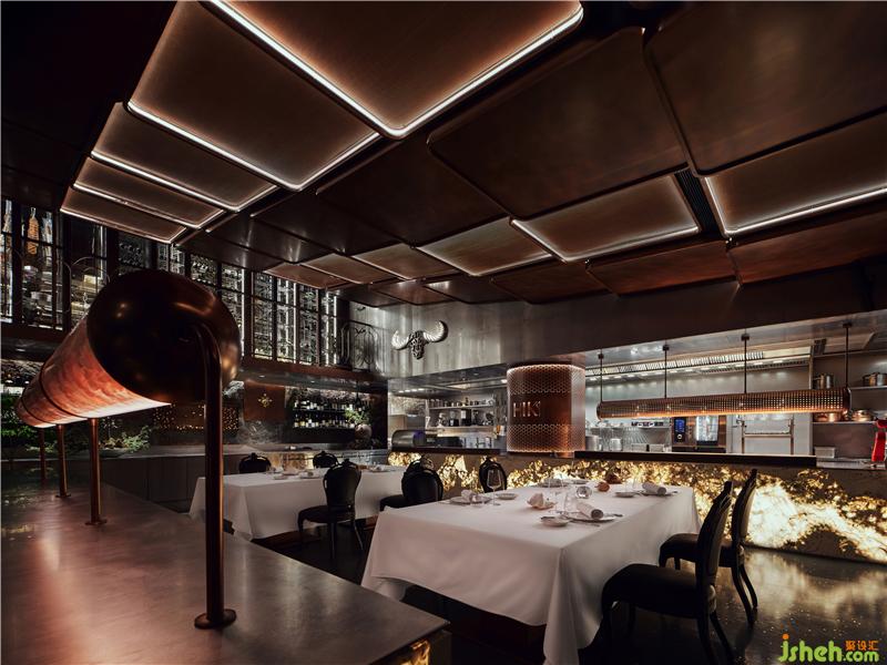為了和用餐區(qū)整體的環(huán)境相得益彰,保溫?zé)舨捎媒饘倬W(wǎng)藏光的設(shè)計手法,不僅兼顧了實用與美觀,在材質(zhì)和造型上與整個開放式廚房區(qū)相呼應(yīng),并散發(fā)出柔和均勻的燈光,可以使食材本原的面貌和烹飪的過程更能被客人清晰地觀賞到。