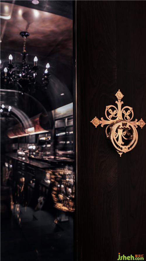 開放式廚房區(qū)擺放著各種各樣的烹飪用具,以最原始的姿態(tài)展現(xiàn)在客人的面前,傳達出濃厚的煙火氣,使客人就像置身于自家的廚房一樣,感覺到輕松而自由,彰顯出自在本真的生活情懷。鐫刻著餐廳LOGO的古銅金屬裝置刻畫出空間的視覺焦點,運用金屬鏤空雕刻的工藝手法給這件裝置藝術(shù)品帶入復(fù)古工業(yè)風(fēng)的情懷,燈帶隱光設(shè)計使空間調(diào)性更為柔和及溫馨。