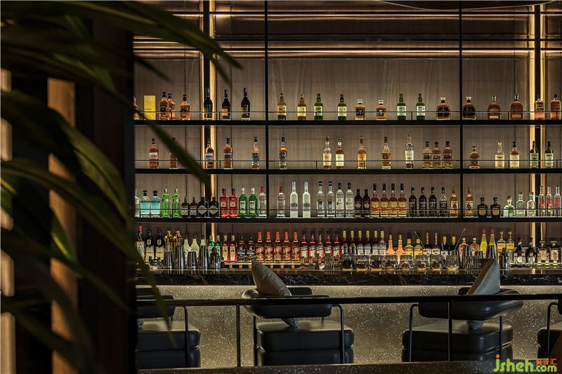 和前臺接待區(qū)域不同,運用深色大理石、些微金屬點綴,輔以柔和色彩燈光的吧臺區(qū),順享精致質(zhì)感。