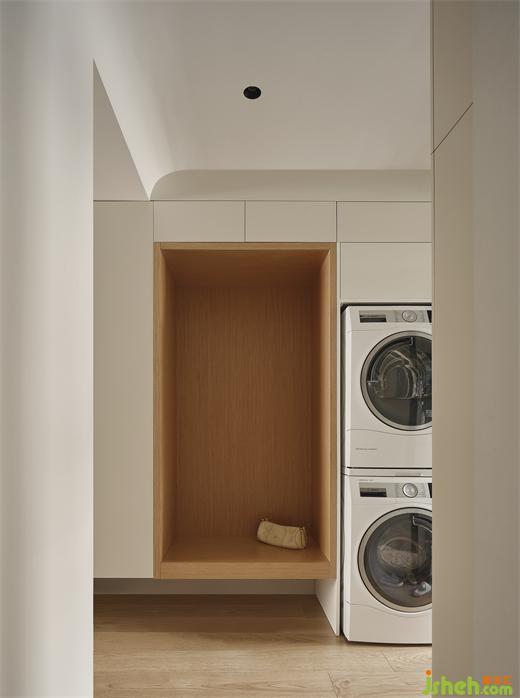 有了充足的過道空間之后,裝修公司設(shè)計(jì)師把鞋柜和洗衣區(qū)安排在了這里。