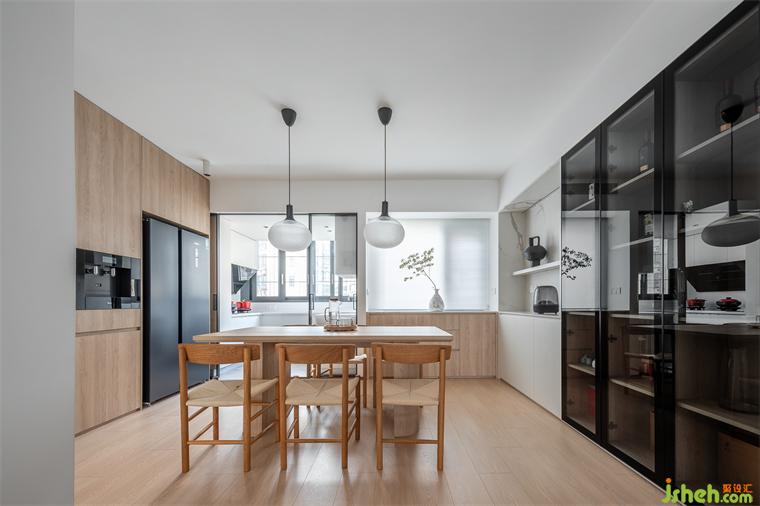 美食成為家人間最深的牽絆,匯聚著家與人之間,絲絲不斷的情誼,裝修公司餐廳與廚房由一道玻璃推拉門隔開,無論開合,視野與光線都不受影響。