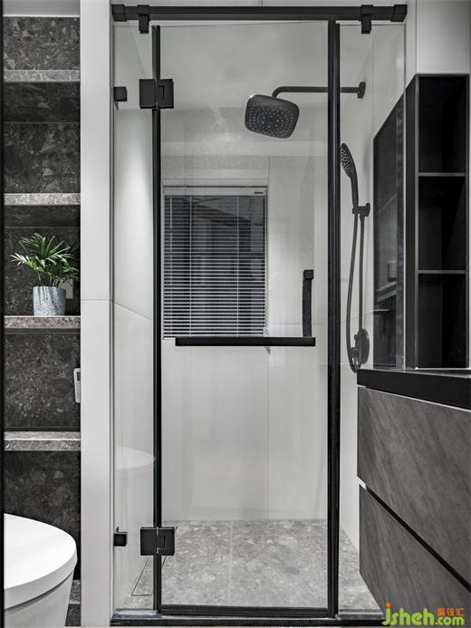 干濕分離的衛(wèi)生間提升了居住生活的舒適度,淋浴區(qū)和洗手臺置入一塊可雙面使用的不銹鋼壁龕,簡潔的同時也兼顧了實用性。