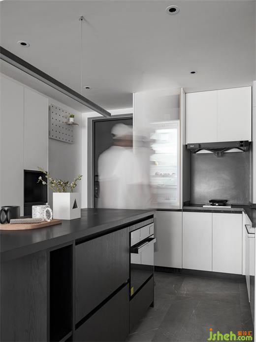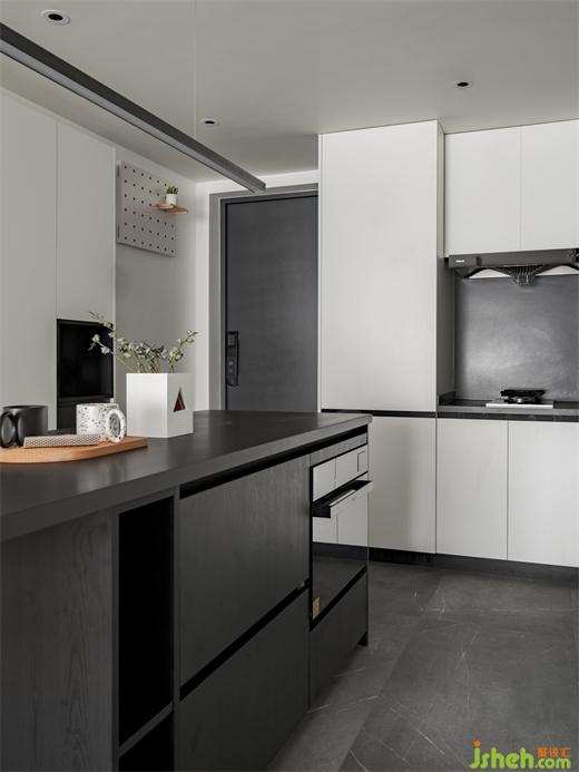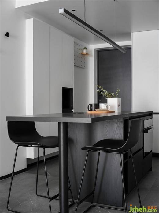 一字型的中島臺提供了更大的操作和儲物空間,同時形成玄關(guān)和餐廚的洄游動線,家裝設(shè)計擴大了整個空間的視野,也增加了實用性,嵌入式的家電沒有多余的累贅,顯得餐廚區(qū)更加簡潔統(tǒng)一。