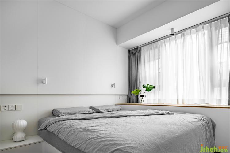 室延續(xù)了空間的整體配色,并且將其做到了極致,映入眼簾的都是干凈與純潔,家裝設(shè)計白色的衣柜與護墻板形成連接,置入燈帶,再配上精致小巧的床頭燈,可以實現(xiàn)不同的燈光氛圍,感官上的簡約也落實在細節(jié)之處。