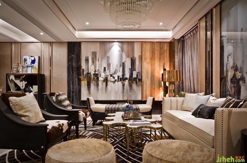 主要材料07上疊:影木飾面板,歐亞木紋大理石,藍(lán)貝露大理石,拉絲不銹鋼,藝術(shù)玻璃,皮雕