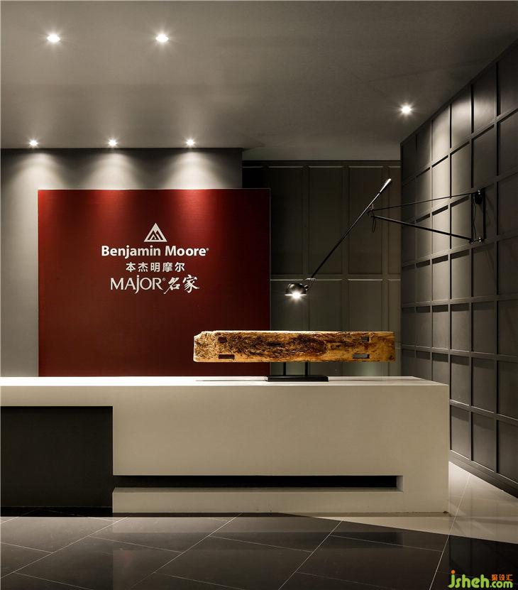 因而項目整體的設計并沒有加入太多商業(yè)化的行為,本杰明摩爾的行業(yè)地位也決定了它根本無需那樣過度的包裝。在這樣一個200平的場地里,除了必要的展示區(qū),設計師留出了足夠的空間用以會見、洽談、休憩和行走。平面結(jié)構上,考慮到各區(qū)域的獨立性、關聯(lián)性與實用性,選擇利用墻體來作為展示產(chǎn)品實際涂裝效果的載體,一方面明確了本杰明摩爾涂料的獨特肌理和色彩厚度,另一方面也賦予空間清晰的體塊關系。