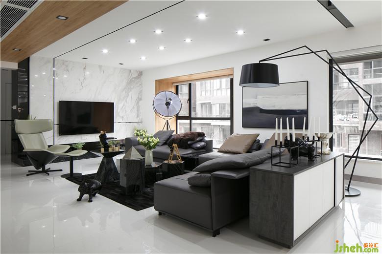 本案業(yè)主系兩位從事時尚事業(yè)的業(yè)主,追求比較純粹的空間,喜歡干凈明亮的空間感受。室內(nèi)設(shè)計師采用大面積不同質(zhì)感的白色材質(zhì)做為畫布,利用黑色不銹鋼線條元素作為畫筆勾勒出空間流線。地面全部純白色地磚,白色烤漆柜門,白色大理石電視背景墻,搭配大塊面溫和質(zhì)感木飾面,在墻面和天花上采用線條元素進(jìn)行空間延伸,塑造出空間之間的聯(lián)系。大客廳背景裝飾用到了木絲水泥板做構(gòu)成處理加上藏?zé)?。柔光與灰調(diào)碰撞,冷淡與熱情都恰如其分的點(diǎn)綴進(jìn)我們空間內(nèi)。