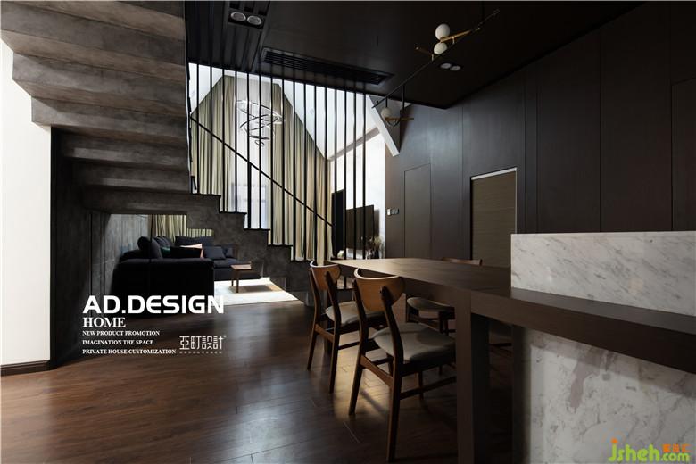 這是一個(gè)頂層復(fù)式,一樓的房高過(guò)高而二樓的房高又過(guò)矮,上樓的踏步比正常要多上幾個(gè),上樓還容易撞到頭,因而樓梯的設(shè)計(jì)是室內(nèi)設(shè)計(jì)師一個(gè)很大的難點(diǎn)。