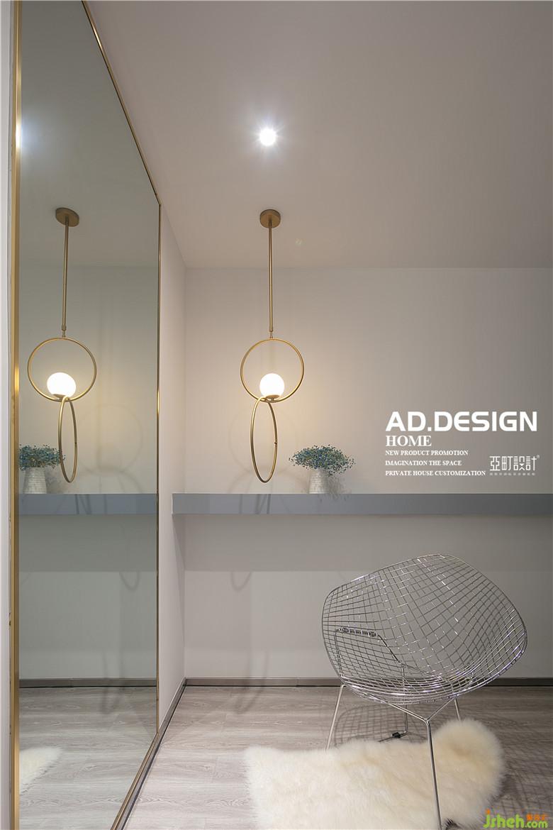 化妝室原本為餐廳,現(xiàn)在看起來更加有格調(diào),環(huán)形裝飾燈透過鏡面點(diǎn)亮了整個(gè)空間。