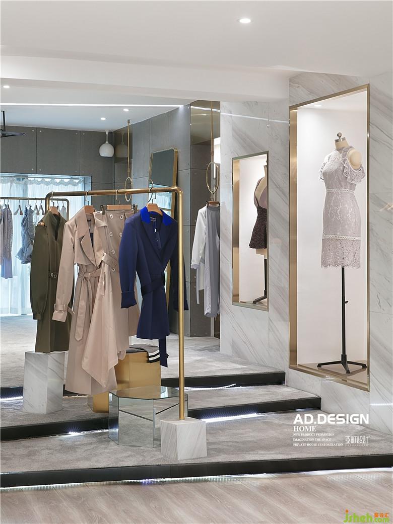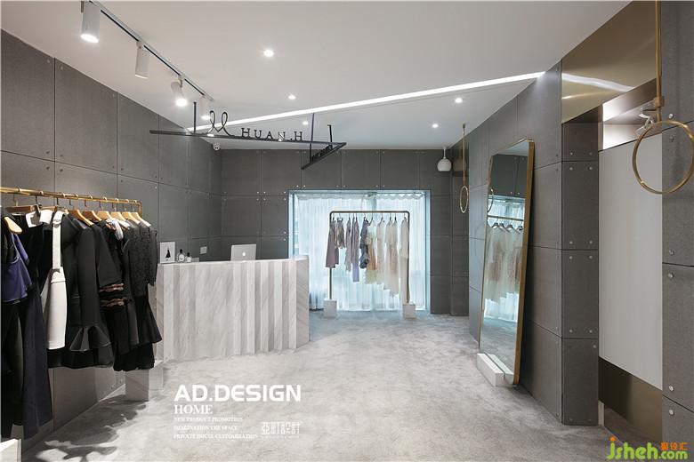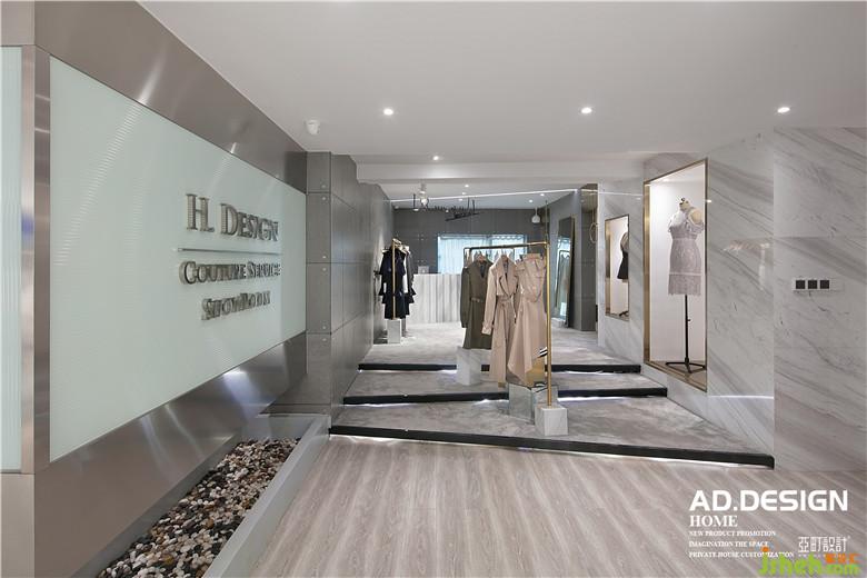 該區(qū)域的灰色調(diào)比例加重,與相鄰空間形成對(duì)比,墻面的鉚釘與金屬配色呼應(yīng),少量的黑色作為點(diǎn)綴,也是整個(gè)空間顏色最重的部分,設(shè)計(jì)為線條吊在前臺(tái)上方做logo展示再適合不過。