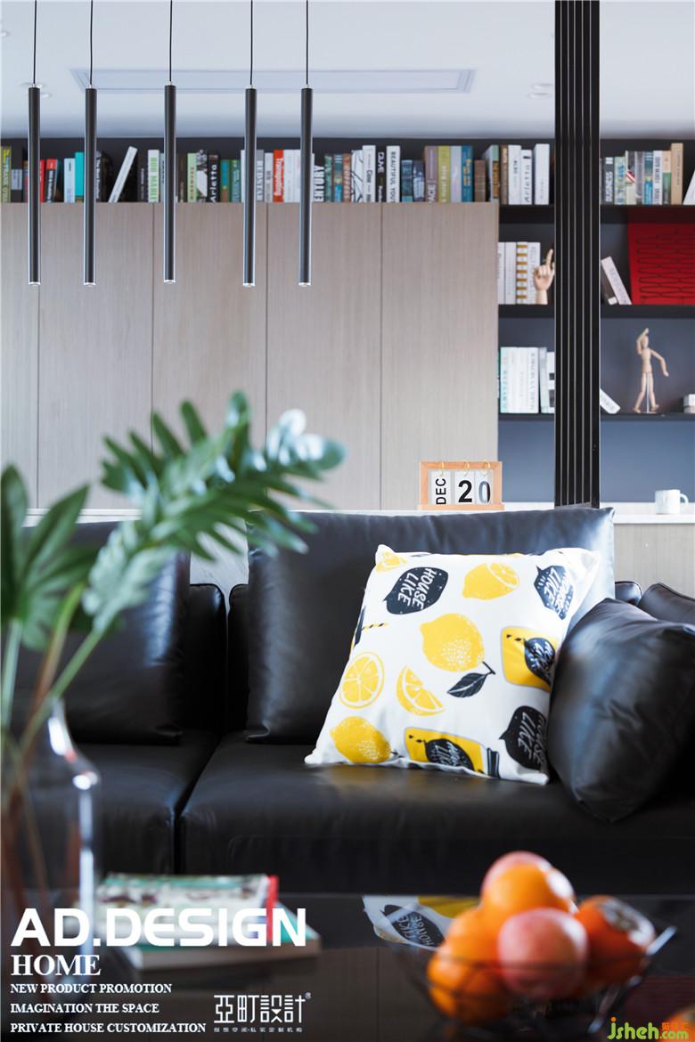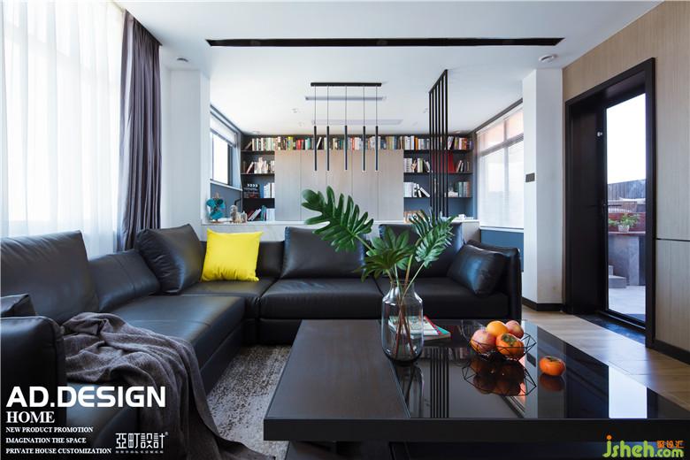 客廳在設(shè)計(jì)上向外延伸,占用了部分露臺(tái)面積。室內(nèi)設(shè)計(jì)師在擴(kuò)大客廳的使用面積的同時(shí),解決了露臺(tái)門(mén)直對(duì)入戶(hù)門(mén)的問(wèn)題。