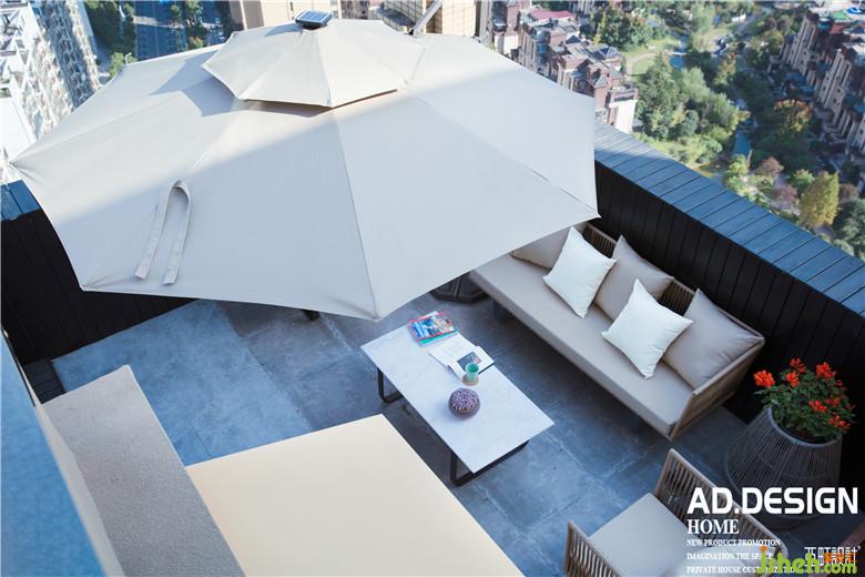 一樓露臺(tái)墻面室內(nèi)設(shè)計(jì)師采用了接近黑色的防腐木,與室內(nèi)的黑白灰現(xiàn)代感設(shè)計(jì)相呼應(yīng)。露臺(tái)上做了踏步和抬高,增加了露臺(tái)的層次感。