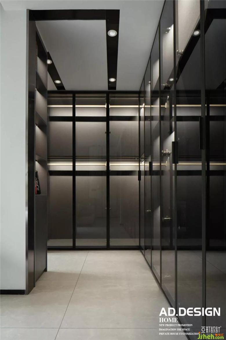 另一側(cè)是帶有鏡燈的梳妝臺區(qū)域,