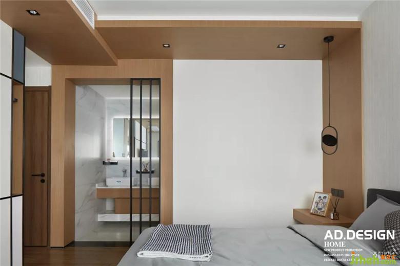 幾何結(jié)構(gòu)頂面、木飾面墻面、紋理感壁紙、是這個空間的面貌,裝修公司配上設(shè)計感的壁燈和色塊拼接畫裝點(diǎn)了這一室的溫柔時,多了一份色彩的跳躍愉悅。